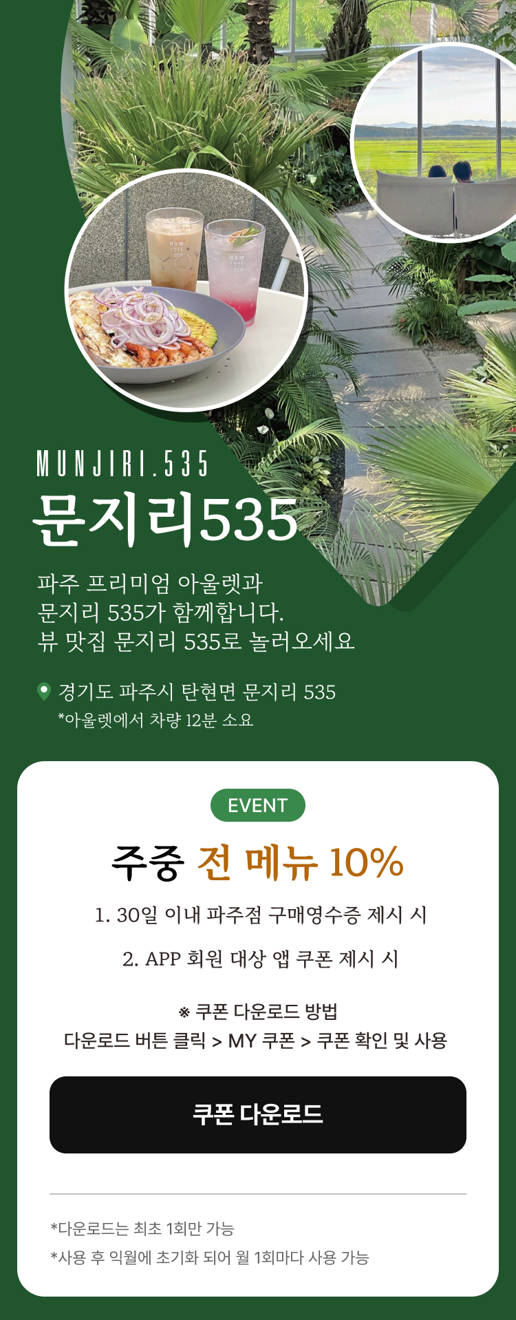문지리 535 전 메뉴 10% 할인 EVENT