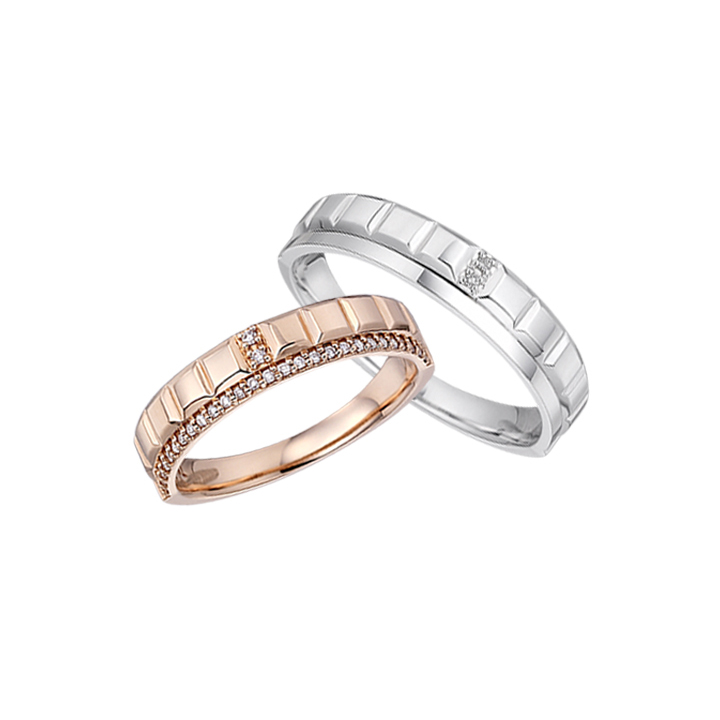 유니티 18K 다이아몬드 웨딩밴드 세트